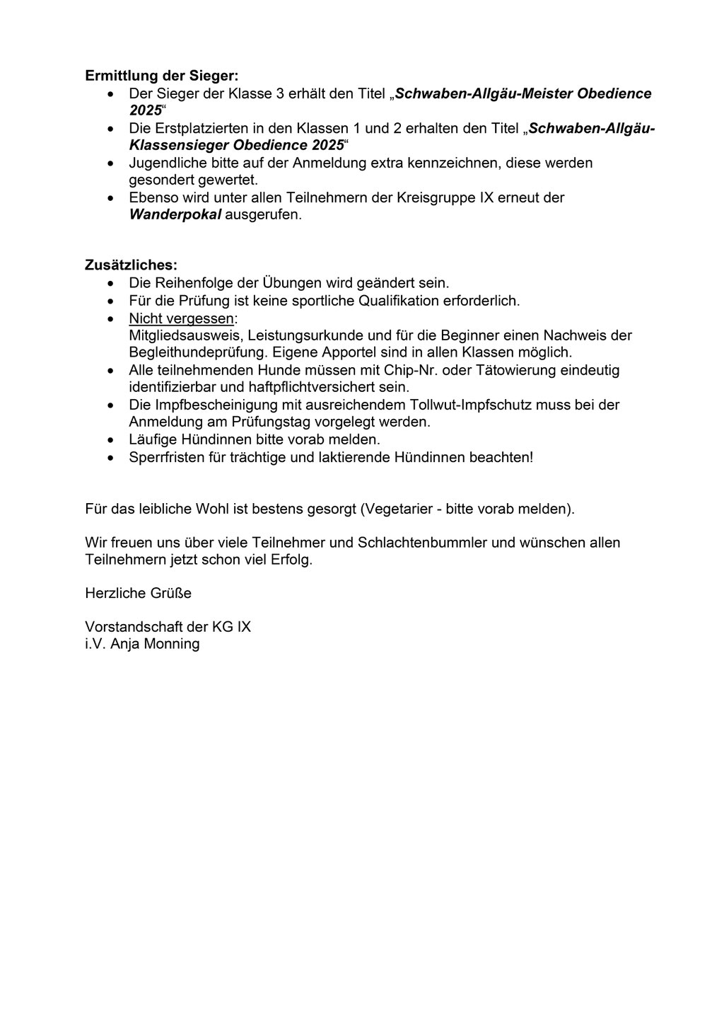 19. Oktober 2025 Obedience Schwaben-Allgäu-Meisterschaft (SAM)